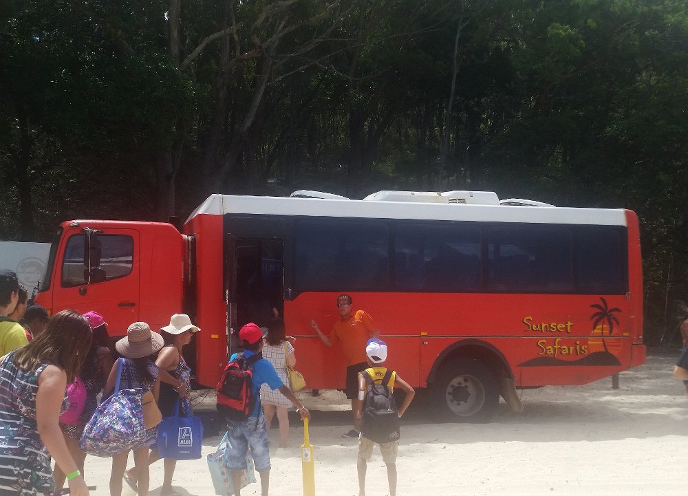 After a refreshing lunch of salad, bread rolls, cold meat and fruit, we were ushered into the 4WD “Tough Bus” and went 4WDing (or bush bashing, as we like to call it) through the rugged bushland on the island. It’s fascinating to learn how an island made of sand can have such a bustling ecosystem, with plants and animals that have adapted to its sandy environment and the ocean providing enough nutrients to keep the vegetation flourishing. Meanwhile, I can’t even keep a plant alive in fertilised soil!
