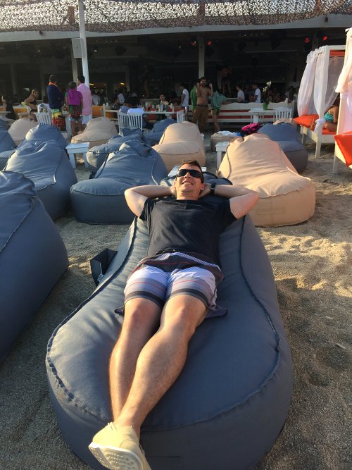Guy at Paradise Beach, where the famous beach parties hit off at sunset